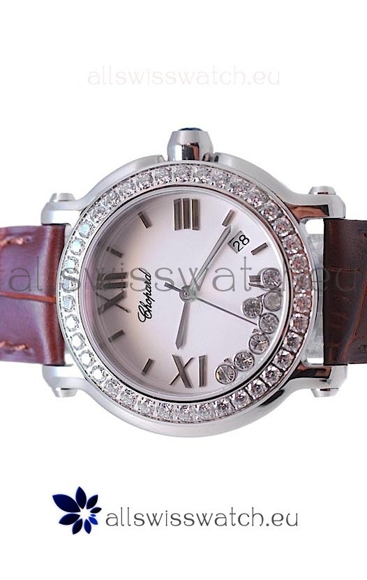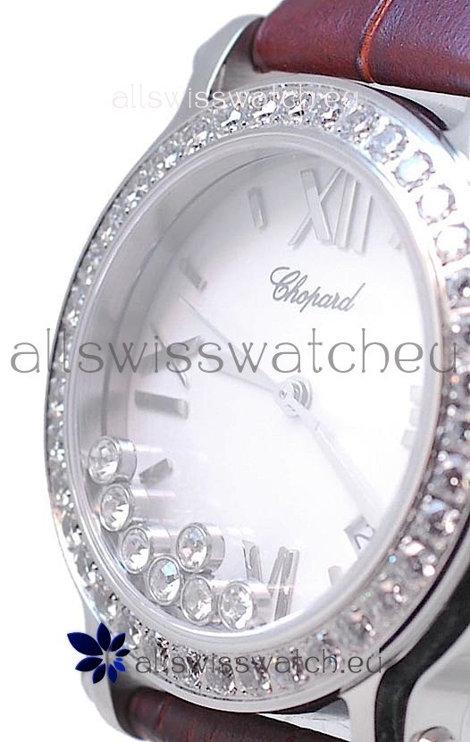 Chopard Happy Sport Star Shaped Diamonds Swiss Watch in Brown Strap
