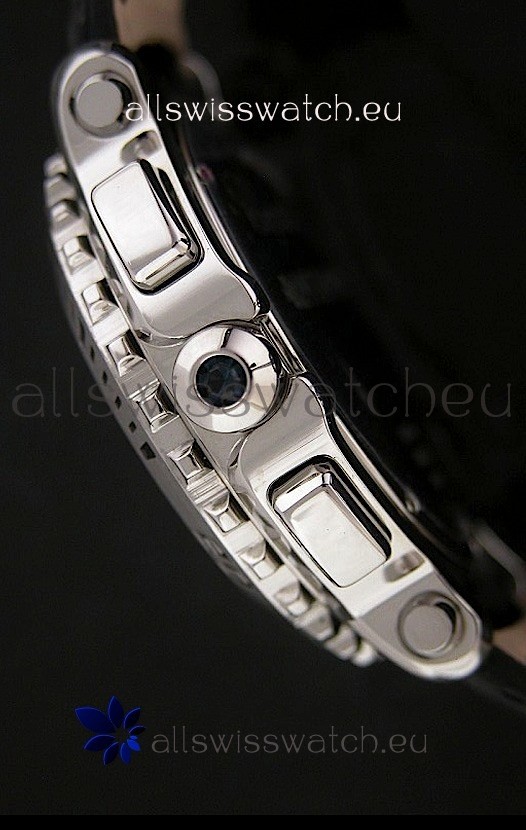 Function: Hour, Minute, Second, Date Display, Three Black Sub Dials, Diamonds in and Full Functional Chronograph