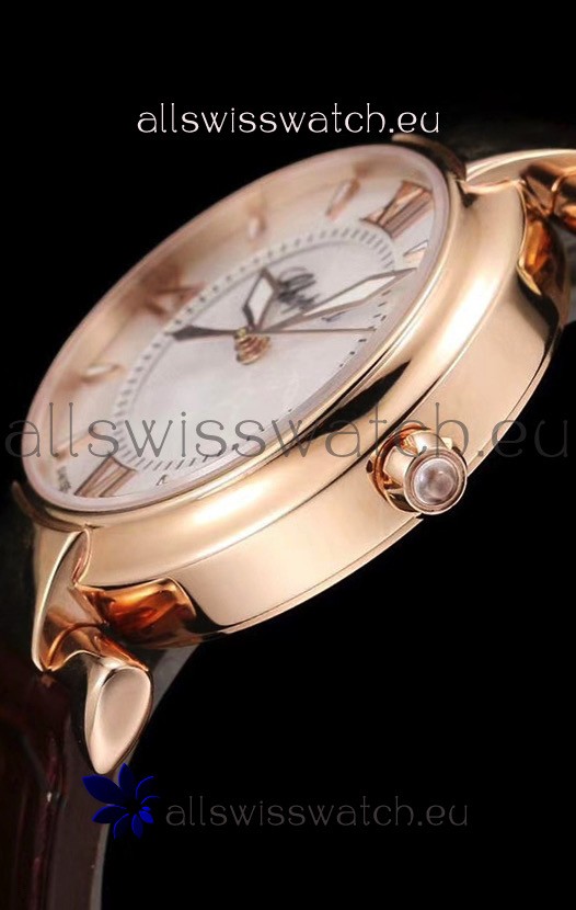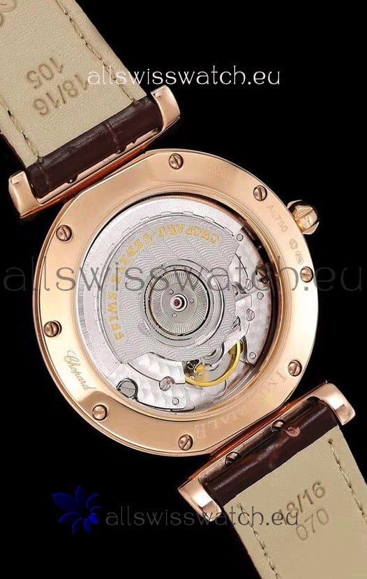 18K Rose Gold Plating on 904L Stainless Steel Casing with complete with Chopard Markings as per the Originals.