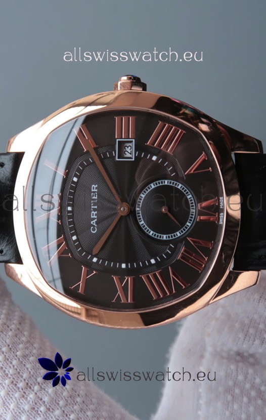 You're reviewing: Drive De Cartier 1:1 Mirror Replica Watch in Rose Gold Plating - Brown Dial