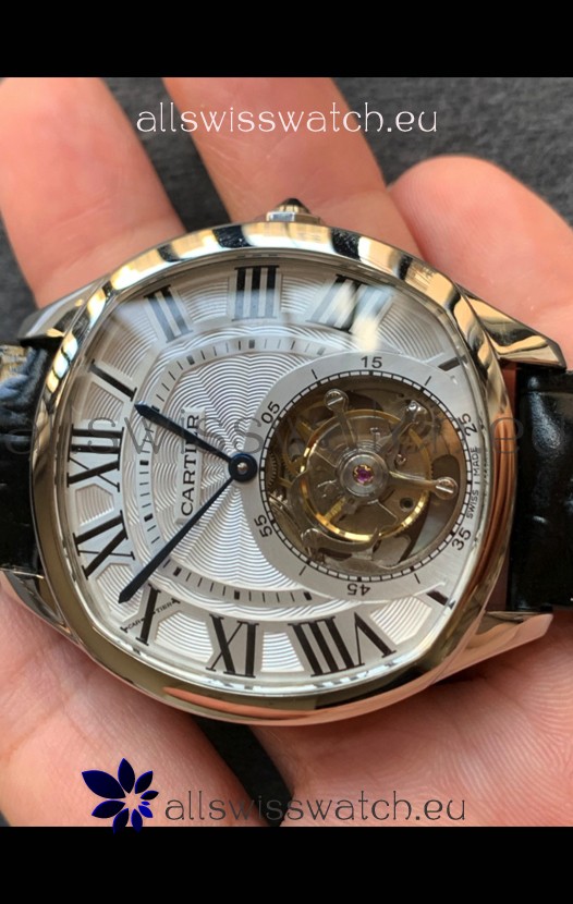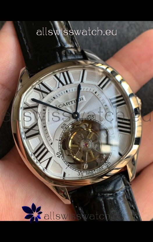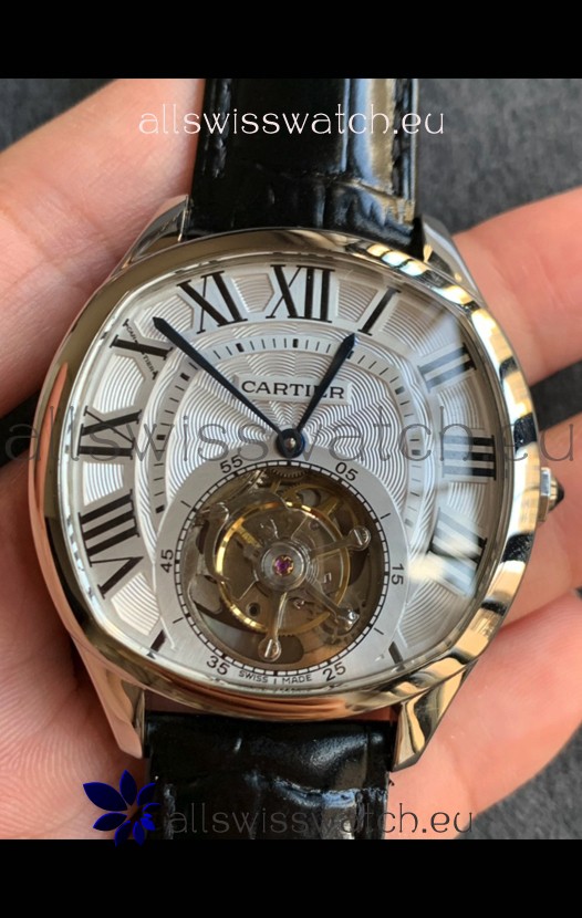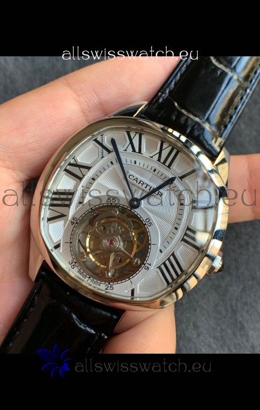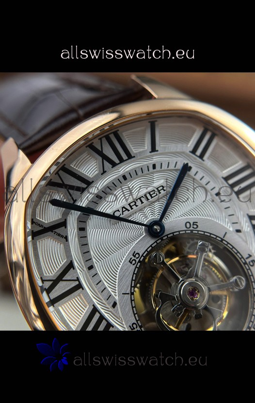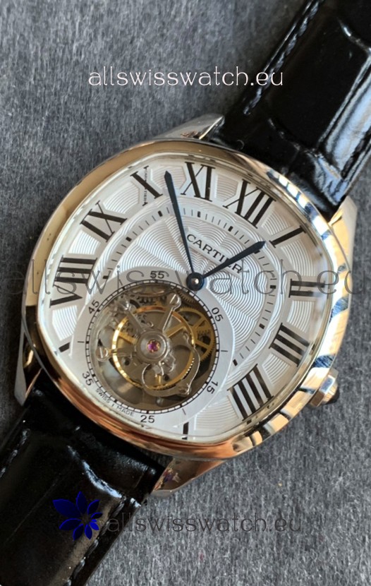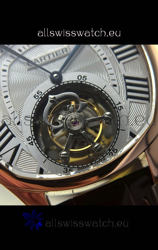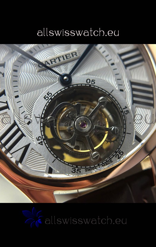Drive De Cartier Rose Gold Tourbillon Super clone Replica Watch in White Dial