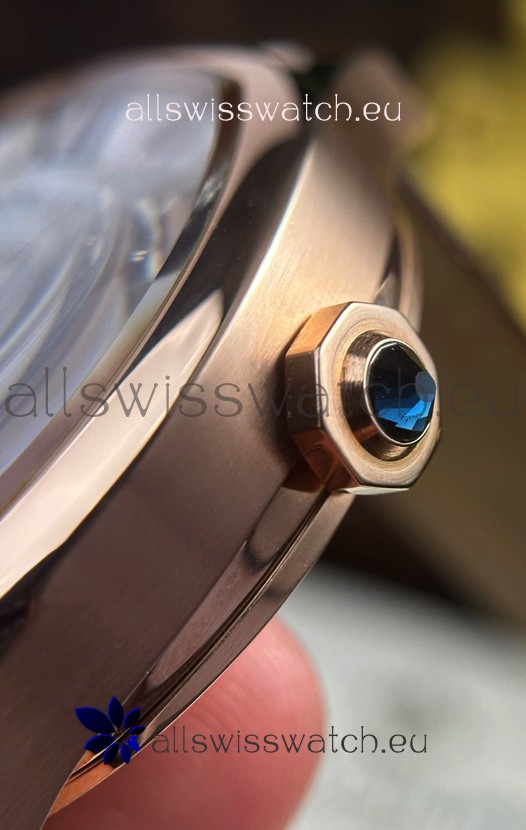 18K Rose Gold Plating on 904L Stainless Steel Casing with complete with Cartier Markings as per the Originals.