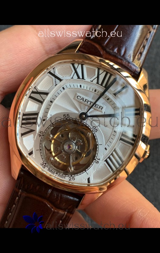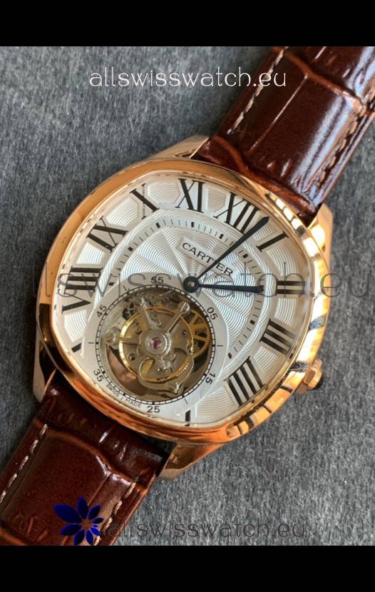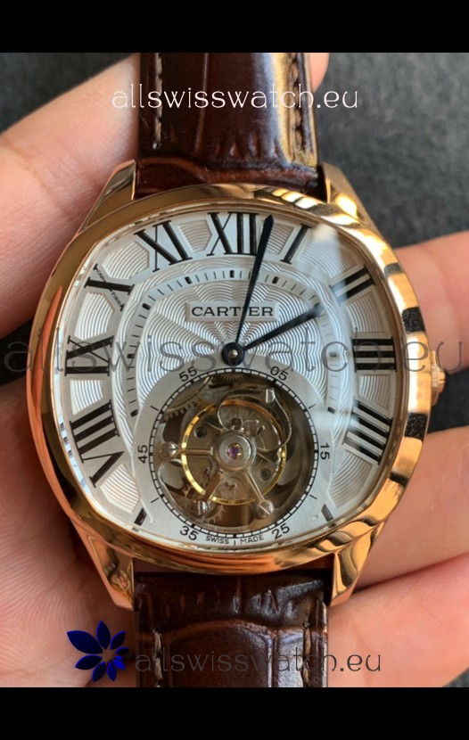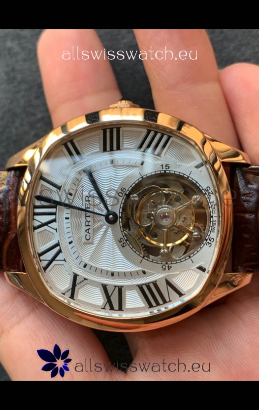 Drive De Cartier Yellow Gold Tourbillon Super clone Replica Watch in White Dial
