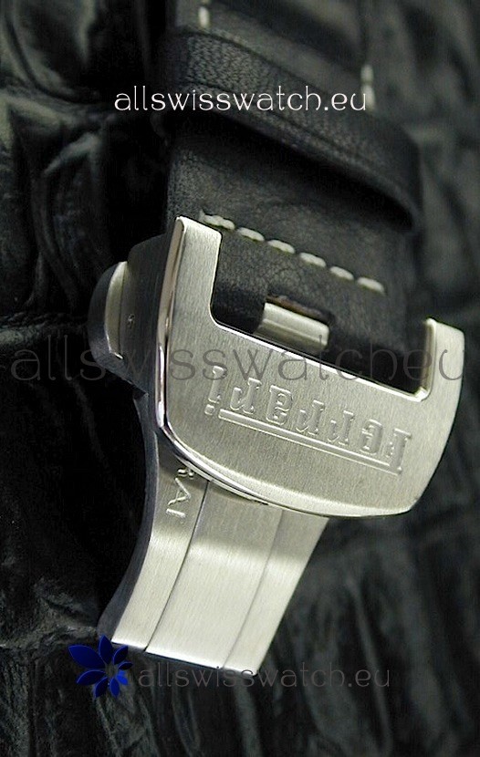 Strap: Genuine Black Leather Strap with Insignia Double Deployant Steel Clasp