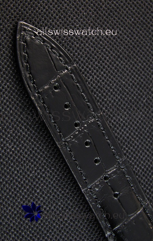 Genuine High Quality Black Crocodile Leather Strap with Franck Muller Markings and Engravings with Stainless Tang Buckle