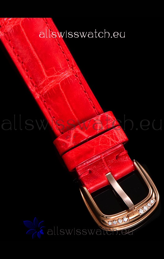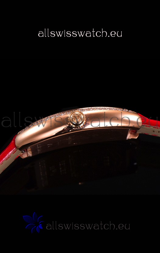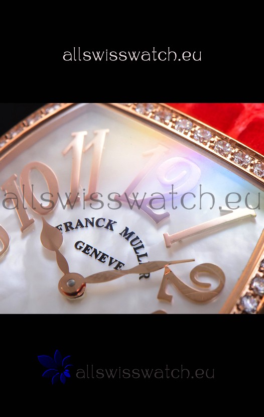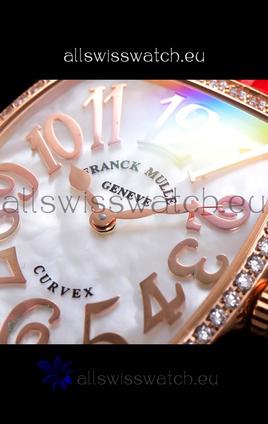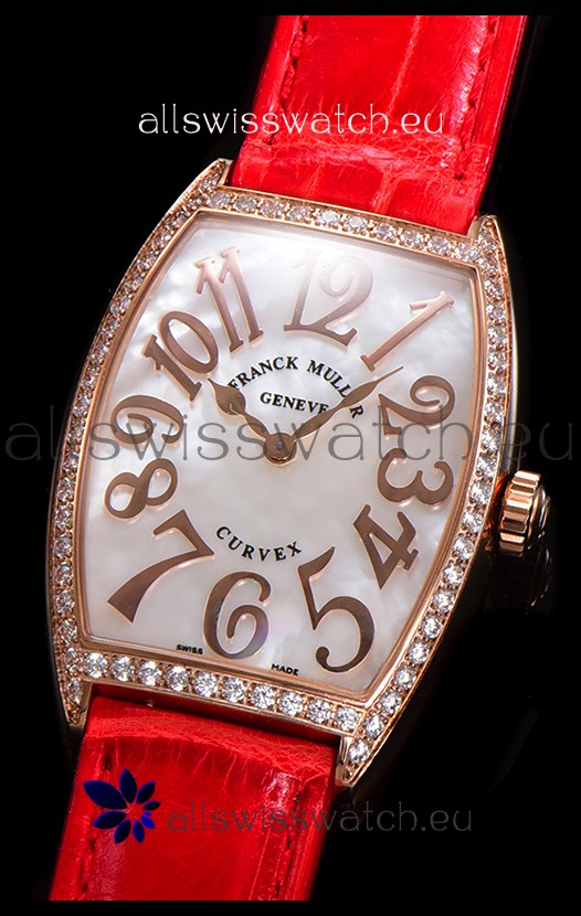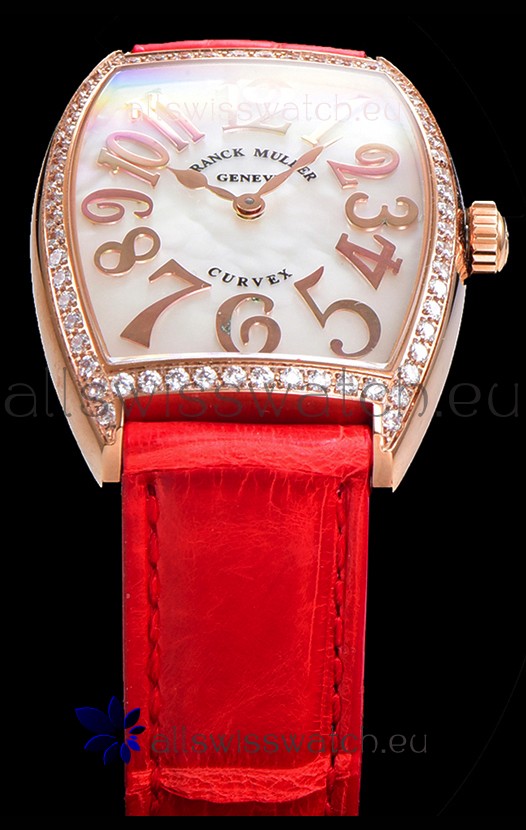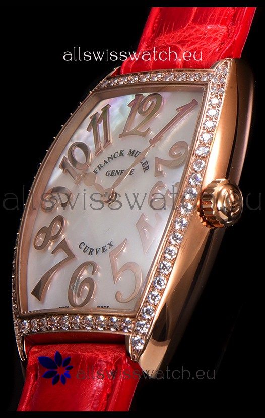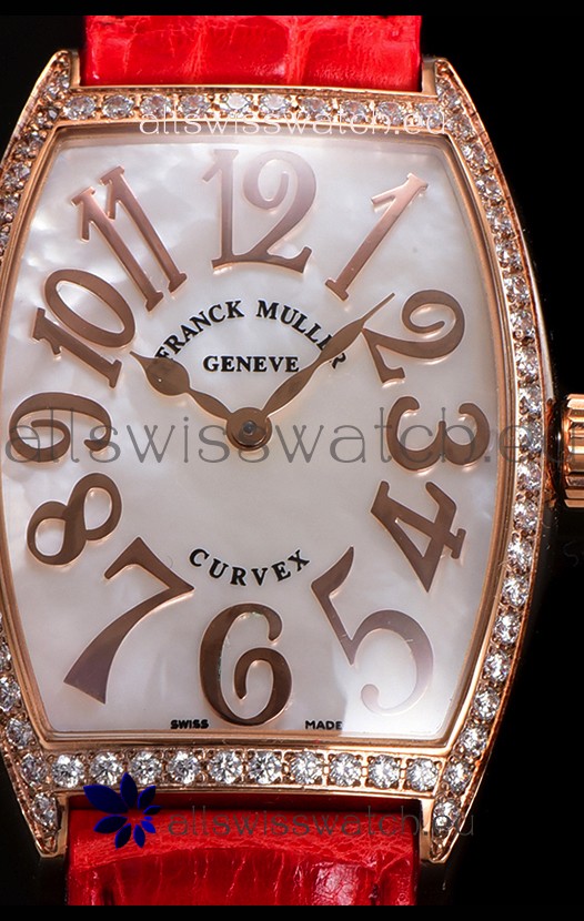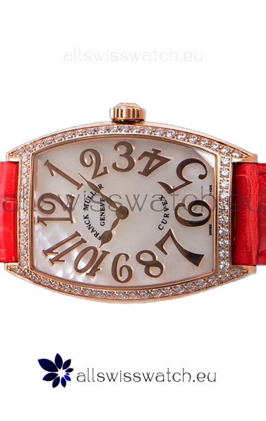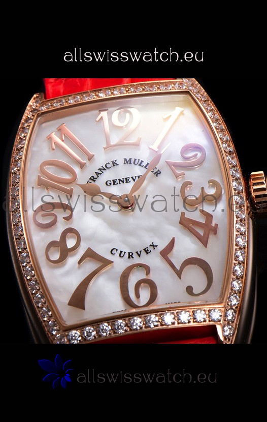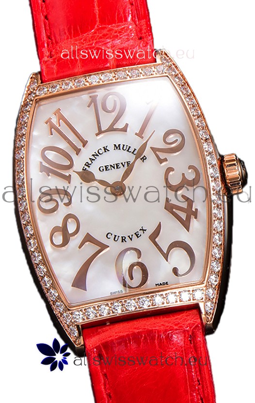 Franck Muller Cintree Curvex Mother of Pearl Dial Watch in Rose Gold Plating - Red Strap