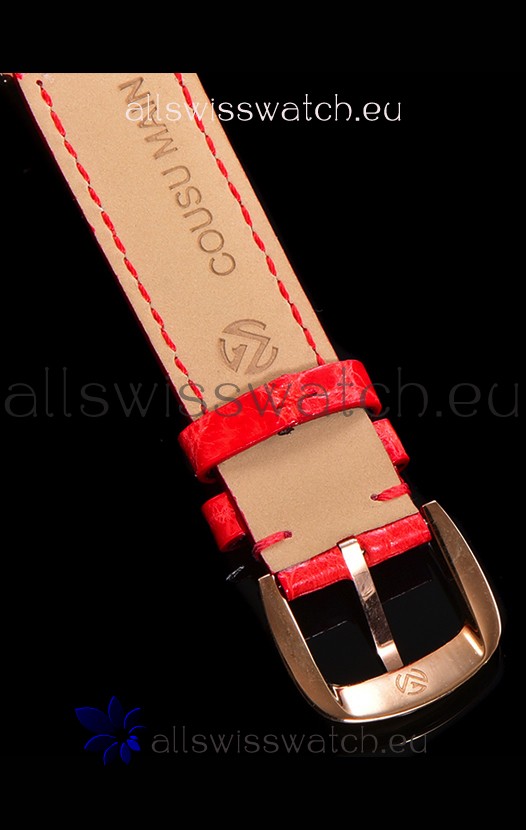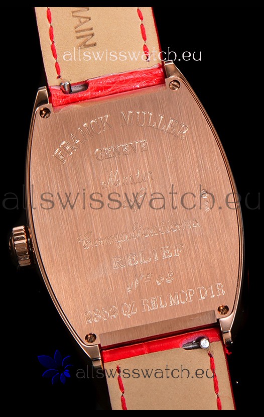 Genuine High Quality Leather Strap with Franck Muller Markings and Engravings with 18K Rose Gold Plating on Stainless Steel Tang Buckle