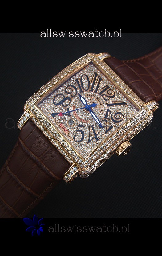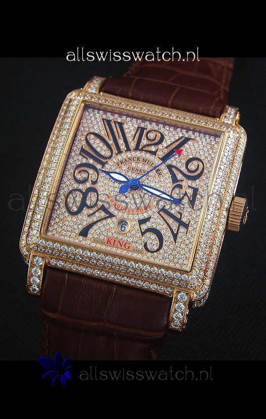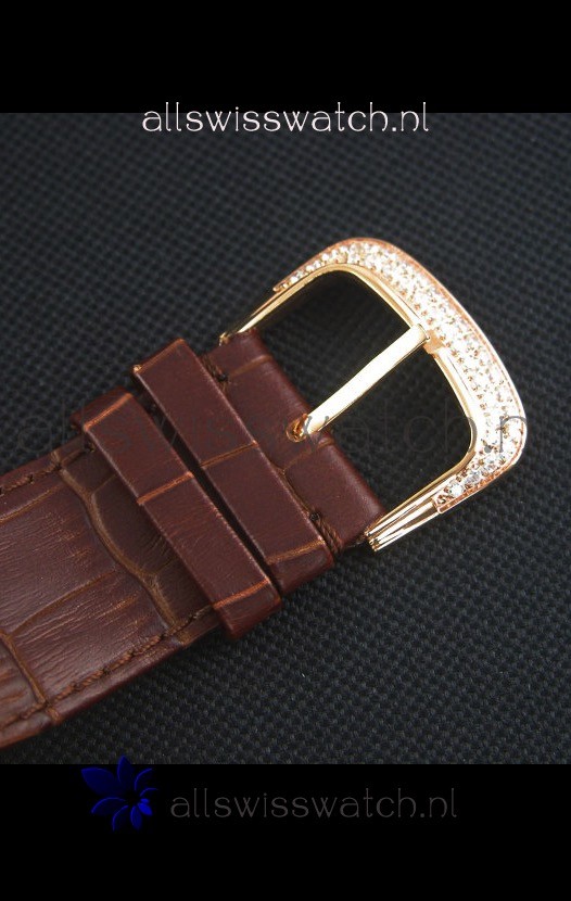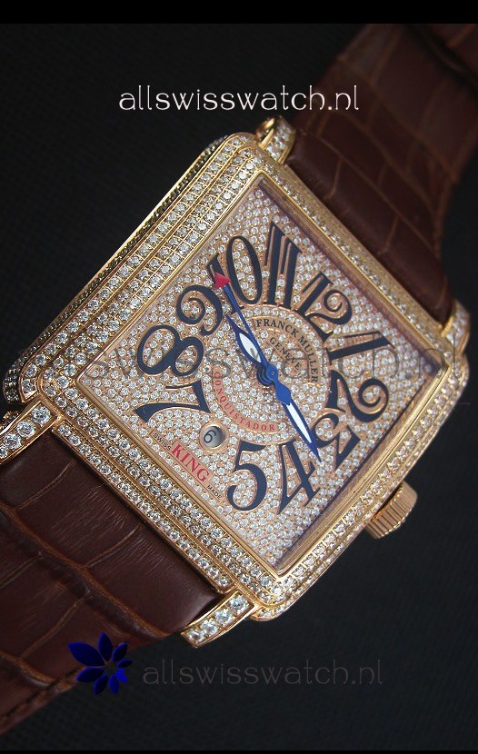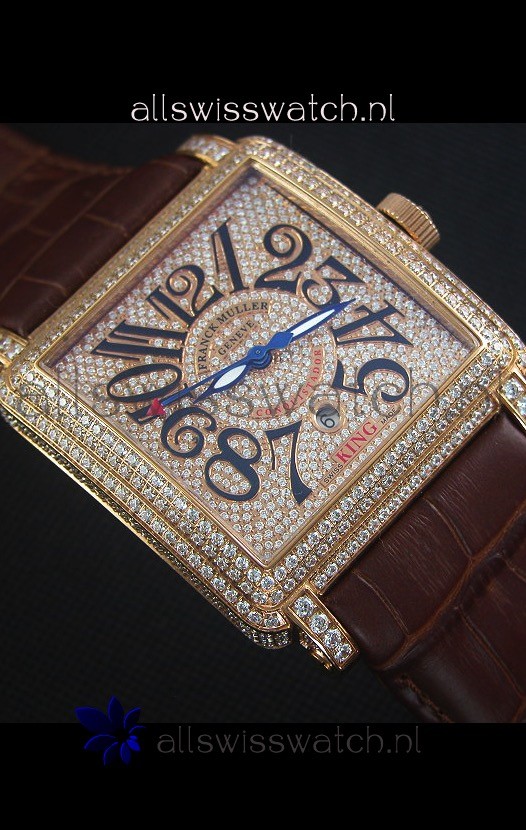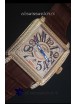 Leather Strap with Franck Muller Markings and Engravings with Diamonds Encrusted Clasp in Pink gold complete with Franck Muller Markings/Engracings
