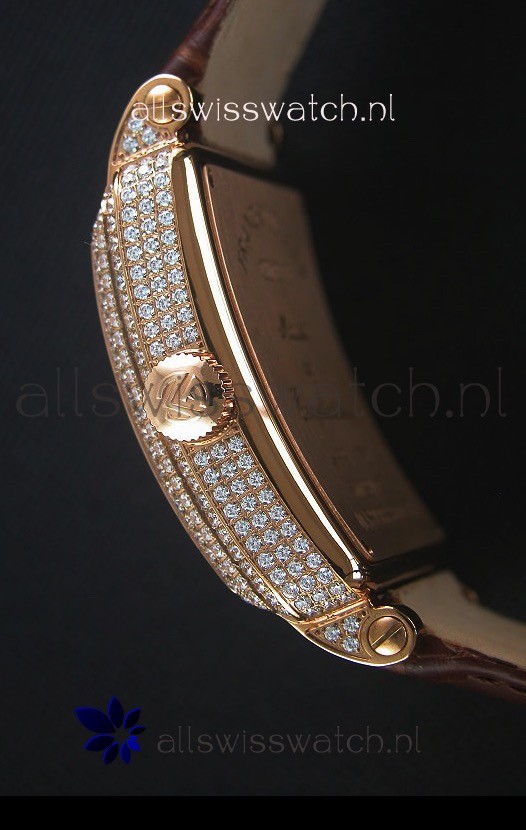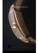 18K Rose Gold Plating on 316L Stainless Steel Case with Diamonds Encrusted Casing.