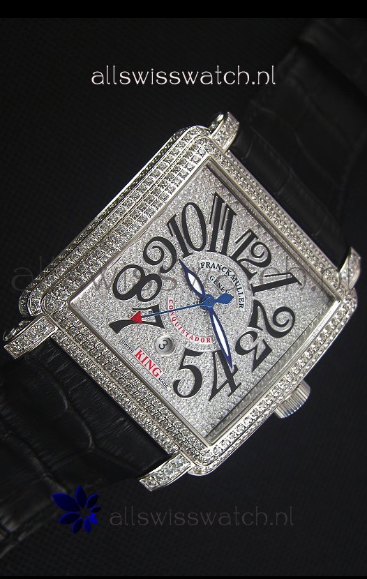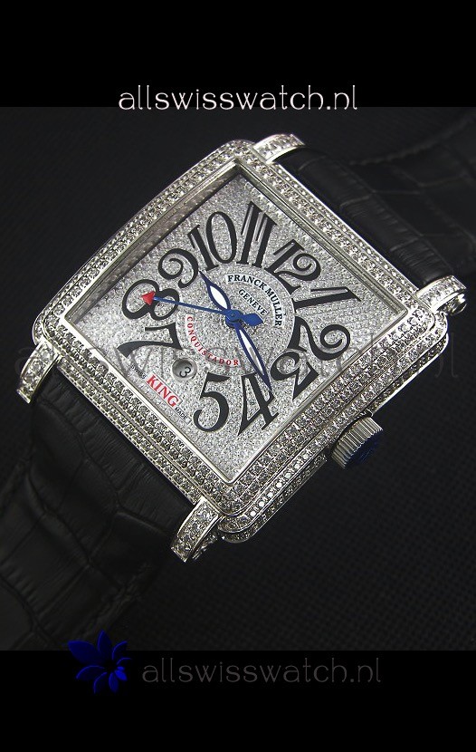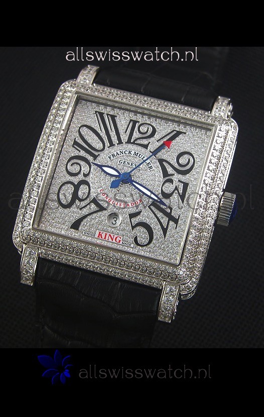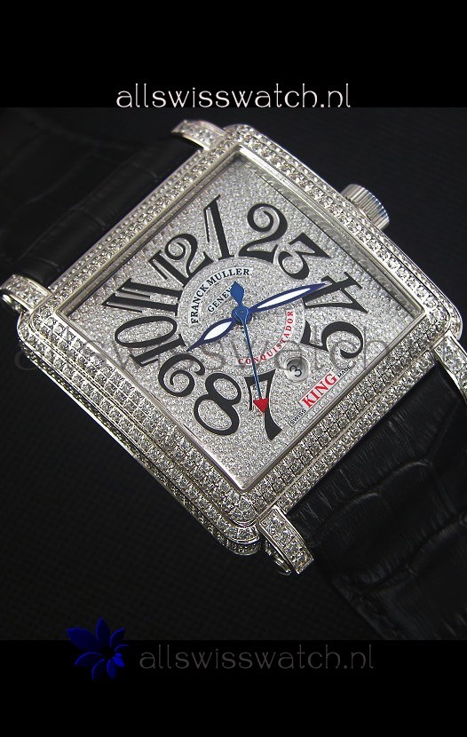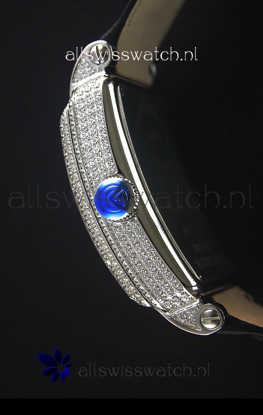 Leather Strap with Franck Muller Markings and Engravings with Diamonds Encrusted Clasp in Stainless Steel complete with Franck Muller Markings/Engracings