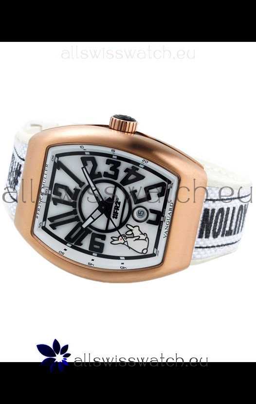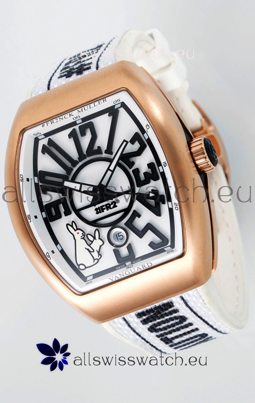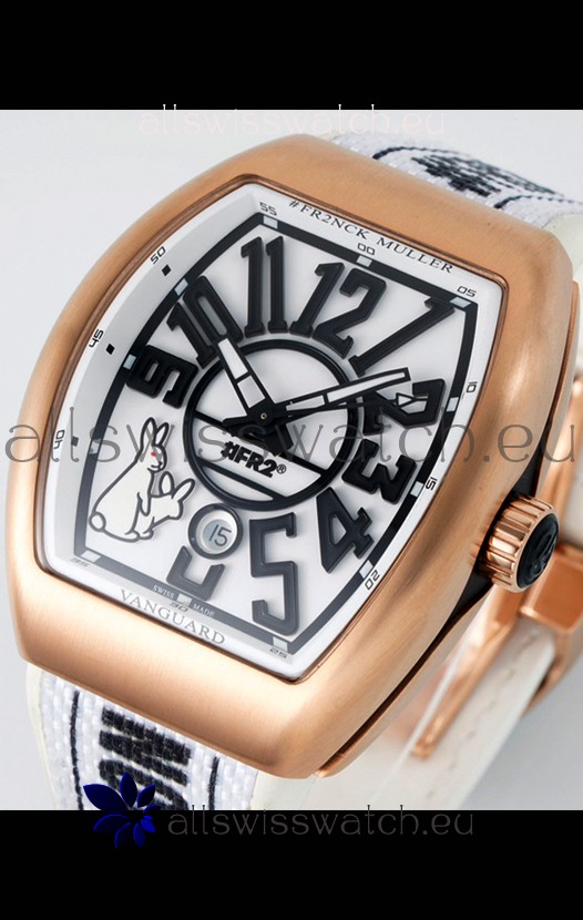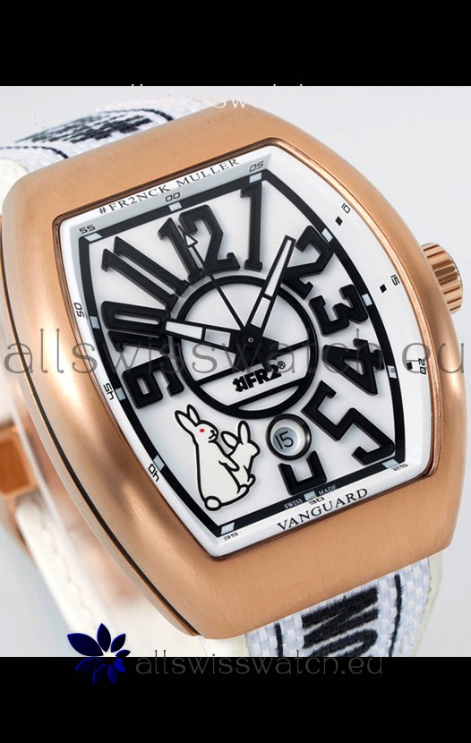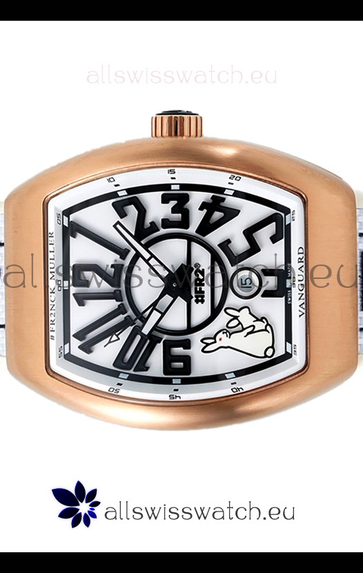 Franck Muller "Fr2nck" Vanguard Rabbit Edition Swiss Replica Watch in Rose Gold Casing