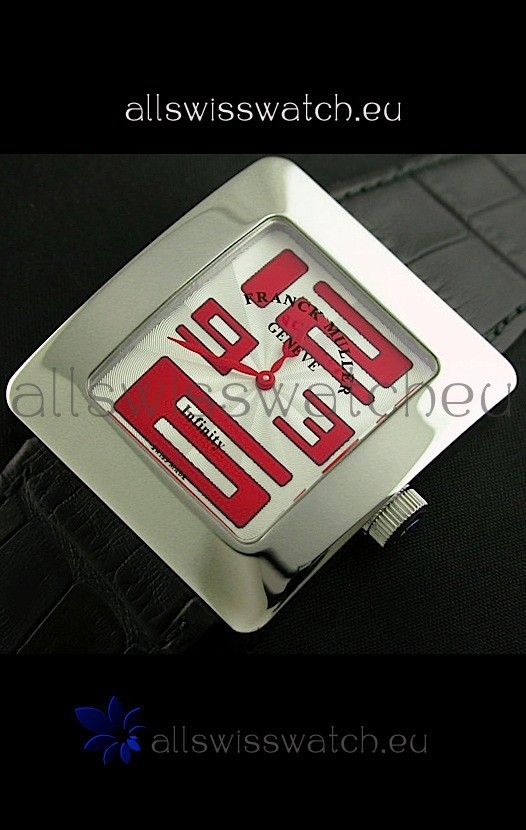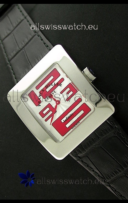 Franck Muller Geneve Infinity Japanese Steel Watch in Red Numeral Markers
