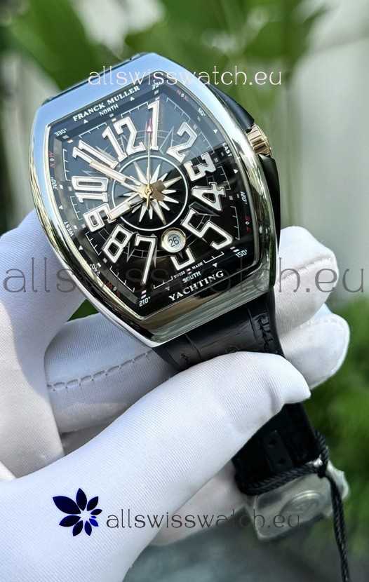 Franck Muller Super Clone Vanguard V45 Yachting Stainless Steel Black Dial Watch