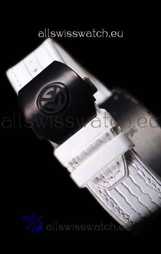 Genuine High Quality Leather Rubber Clad Strap with Franck Muller Markings and Engravings with Stainless Steel PVD Coated Double Folding Clasp