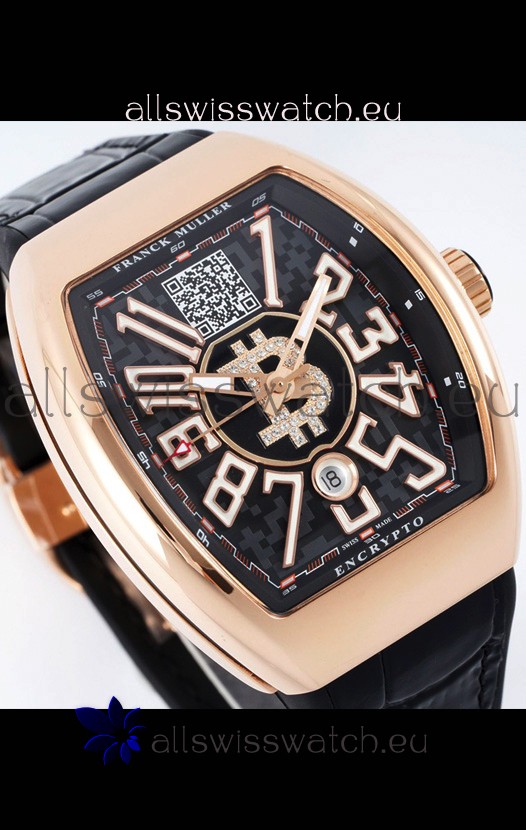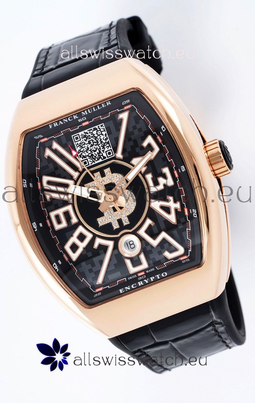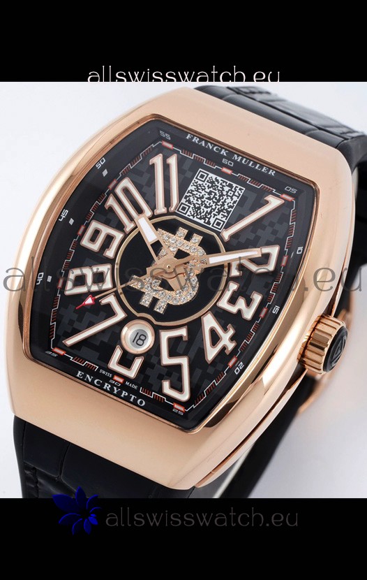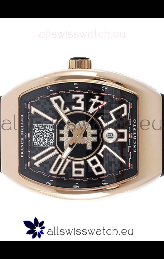 Franck Muller Vanguard Encrypto BTC V45 Rose Gold Casing Swiss Replica Watch