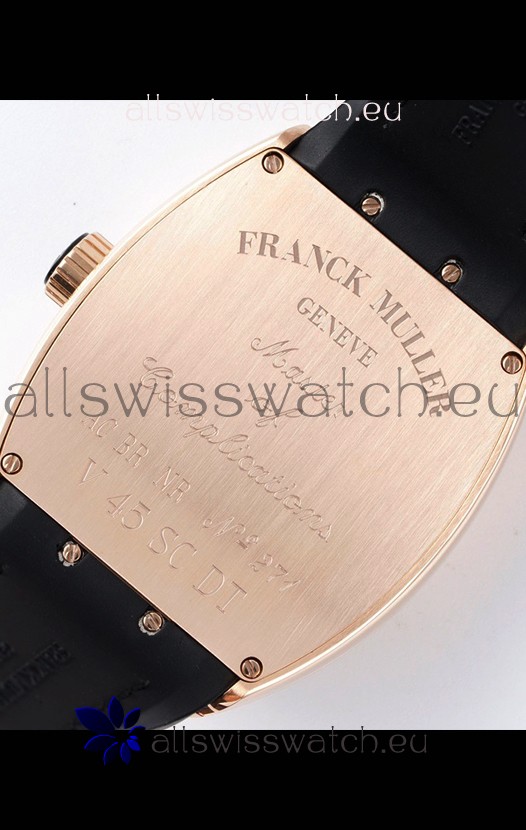 18K Rose Gold Plating on 904L Case Complete with Franck Muller Markings and Engravings