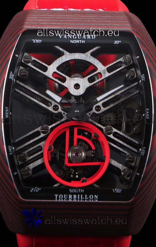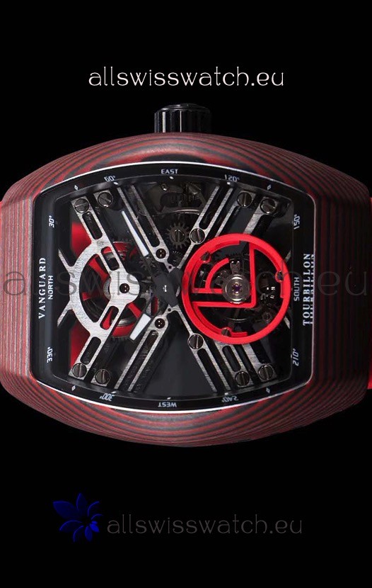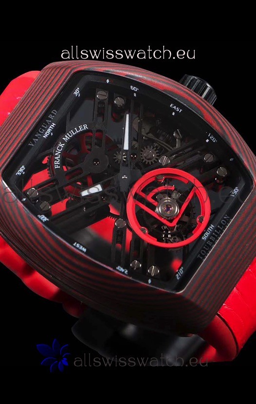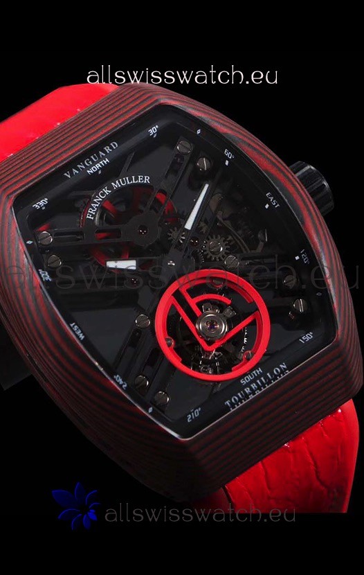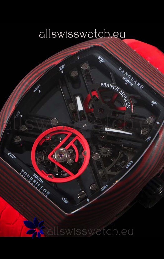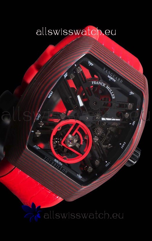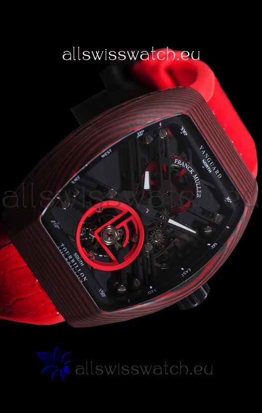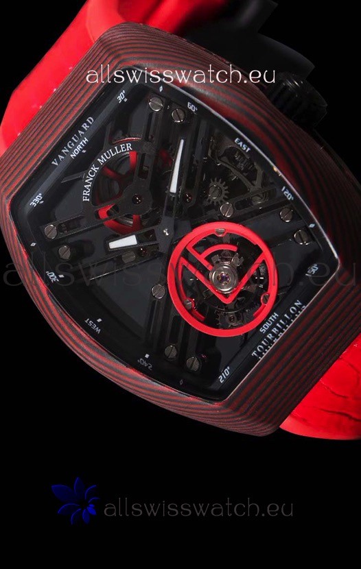 Franck Muller Vanguard Skeleton Tourbillon Red Carbon Swiss Replica Watch