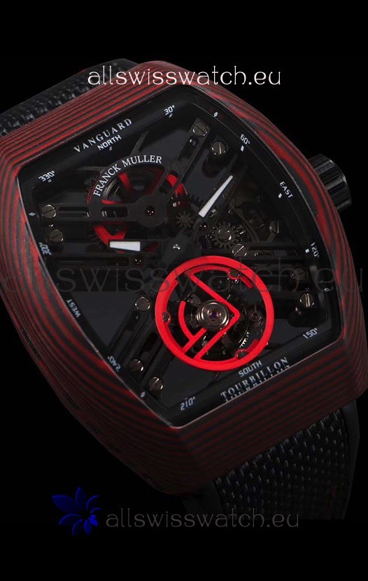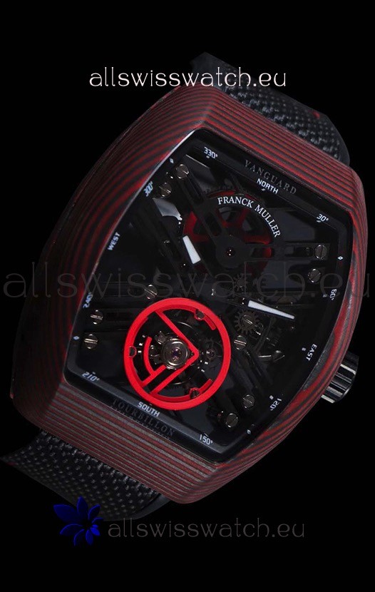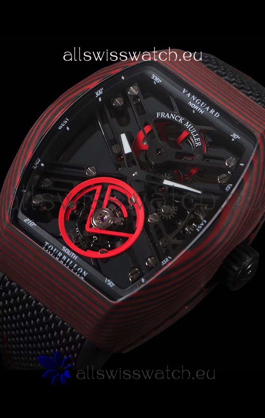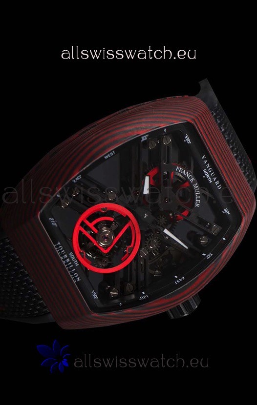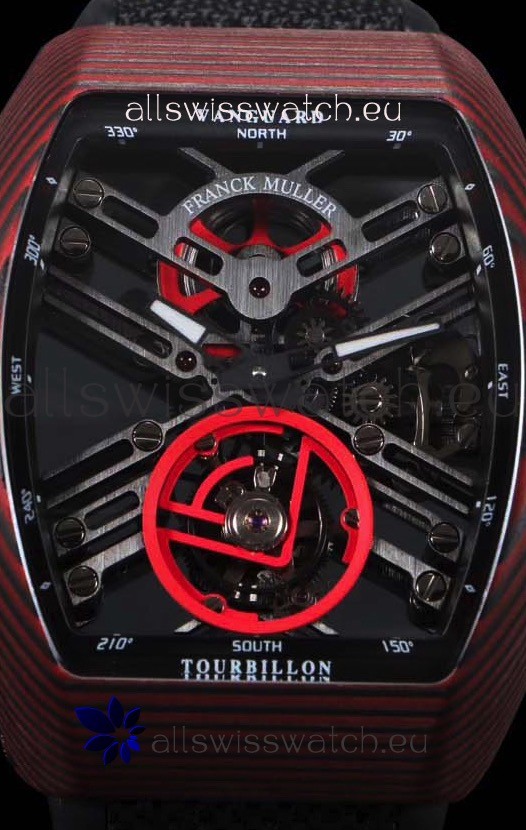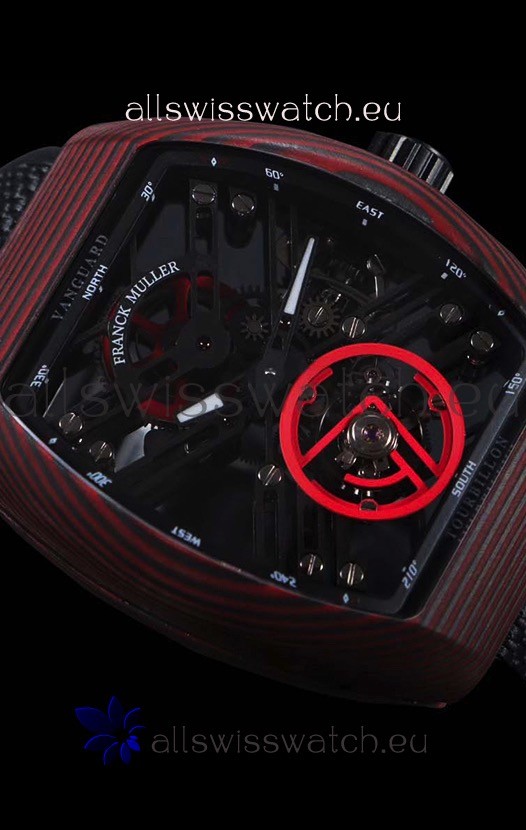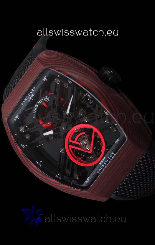 Franck Muller Vanguard Skeleton Tourbillon Red Carbon Swiss Replica Watch