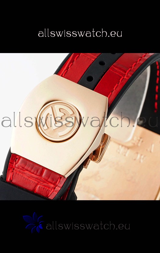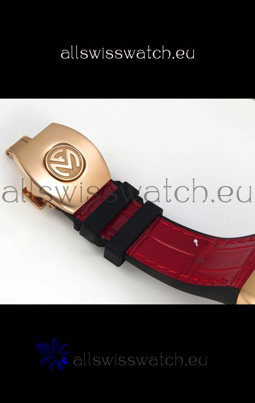 Genuine High Quality Hybrid Rubber/Leather Clad Strap with Franck Muller Markings and Engravings with Stainless Steel Folding Clasps