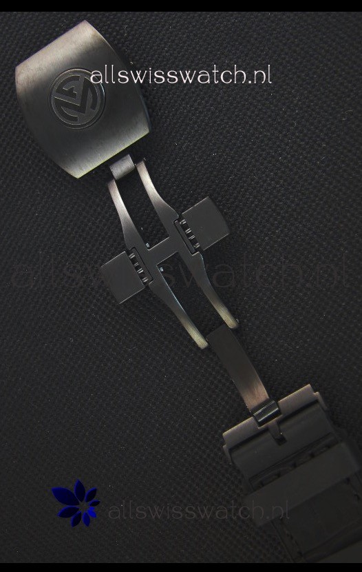 Leather Strap with Franck Muller Markings and Engravings with PVD Coated Double Folding Clasp