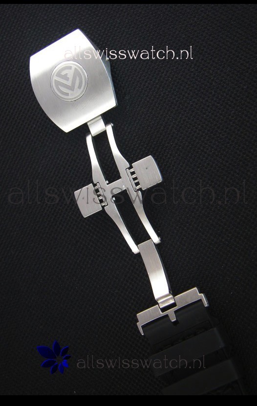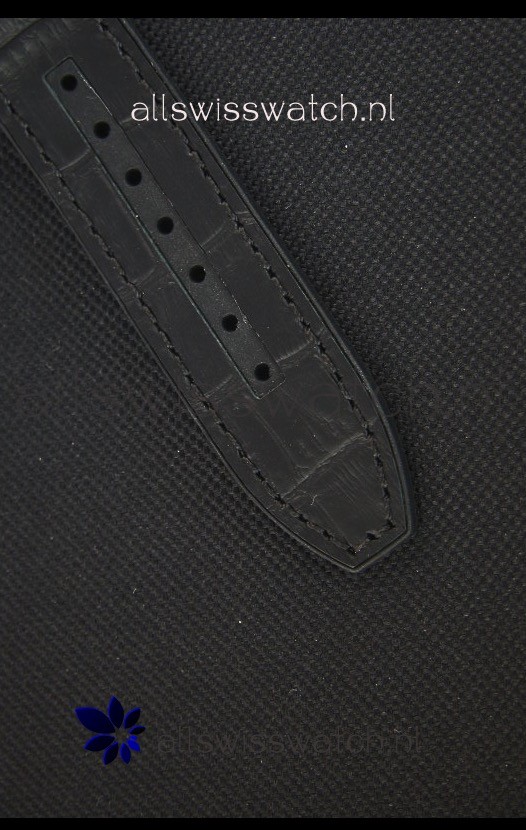 Leather Strap with Franck Muller Markings and Engravings with Stainless Steel Double Folding Clasp