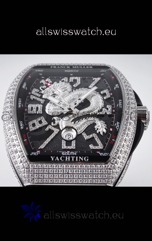 Franck Muller Vanguard Yachting Dragon V45 Black Dial in Diamonds Bezel Swiss Replica