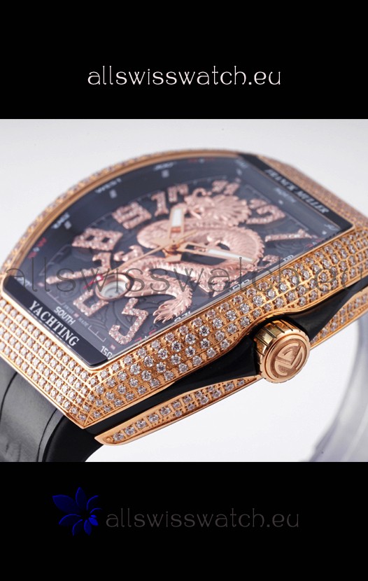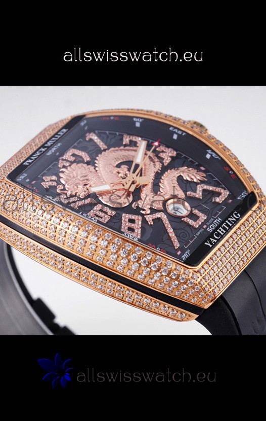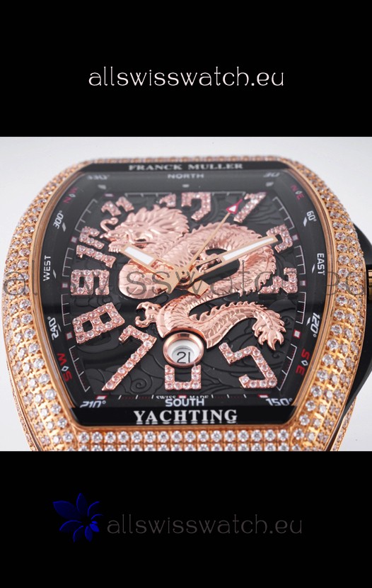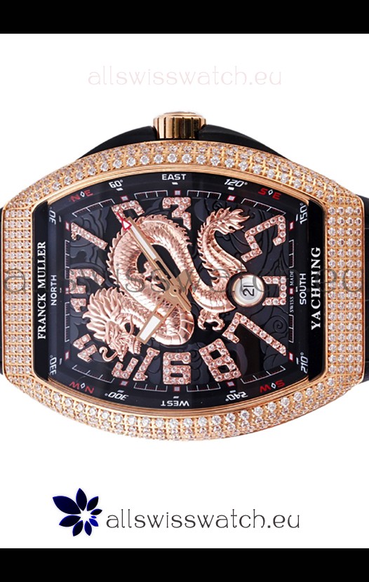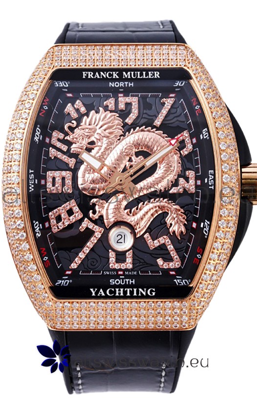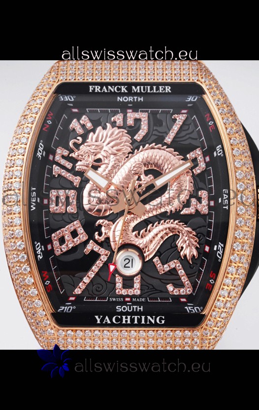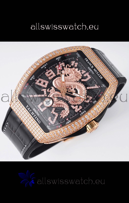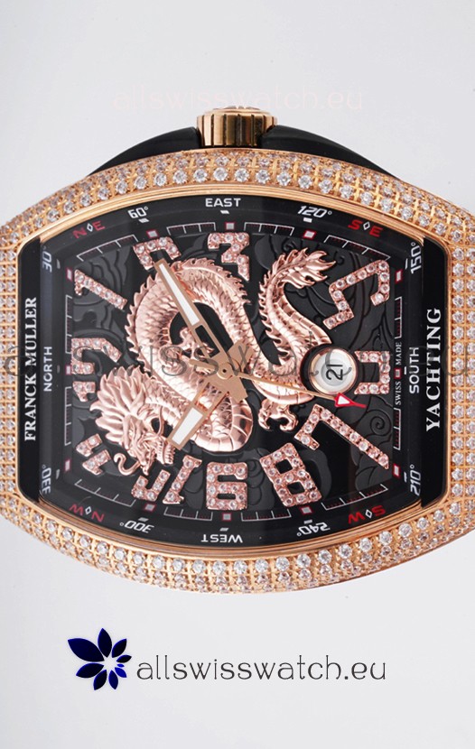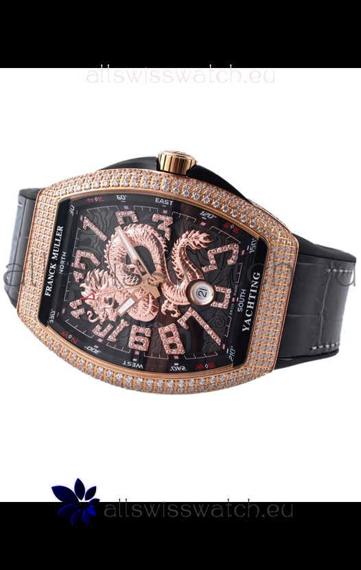 Franck Muller Vanguard Yachting Dragon V45 Black Dial in Gold Diamonds Bezel Swiss Replica