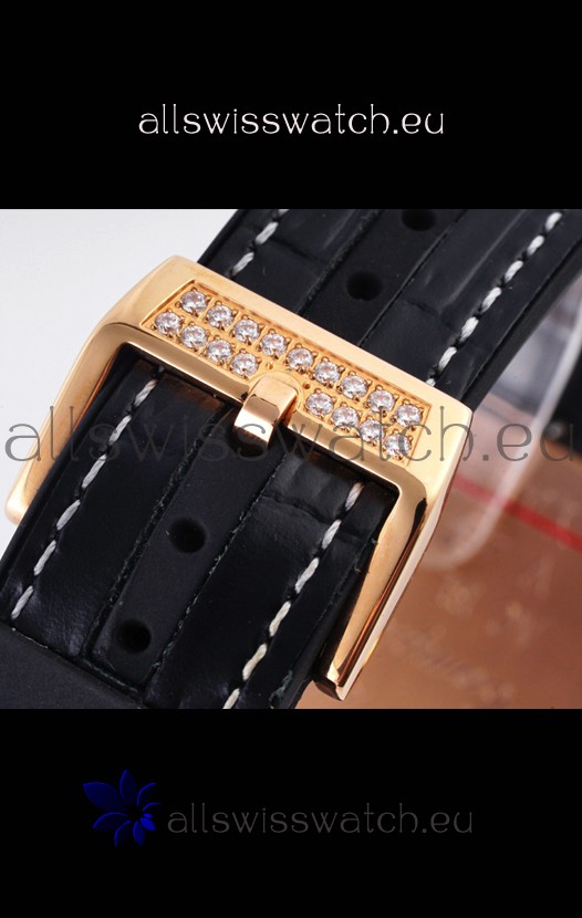 18K Rose Gold Plating on 904L Steel Case with Diamonds Paved Bezel