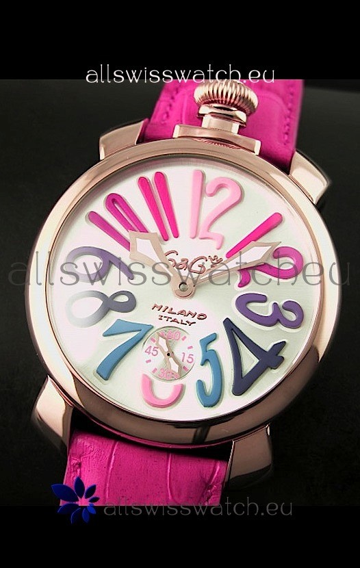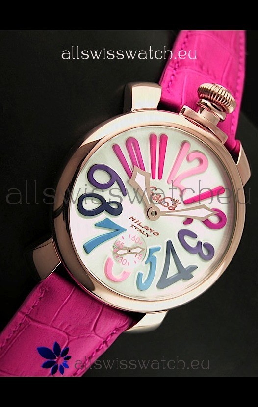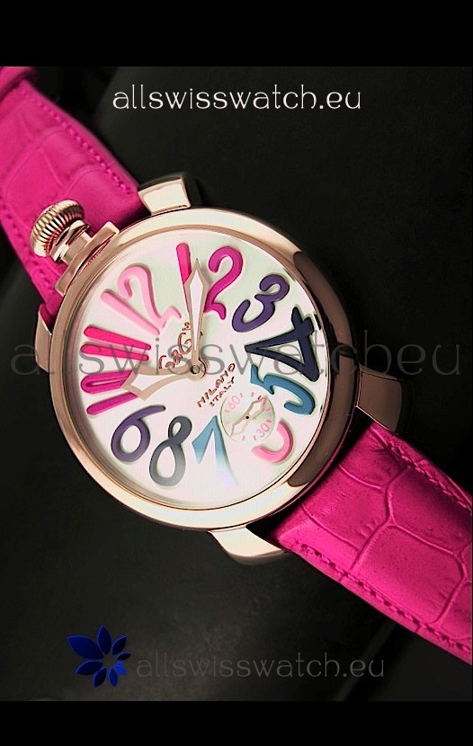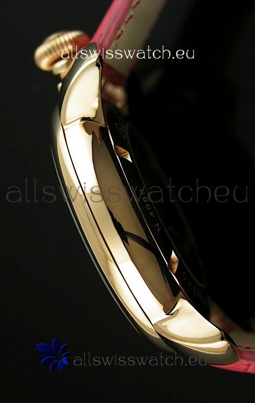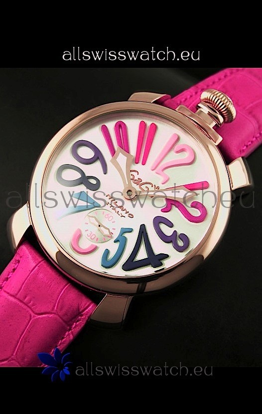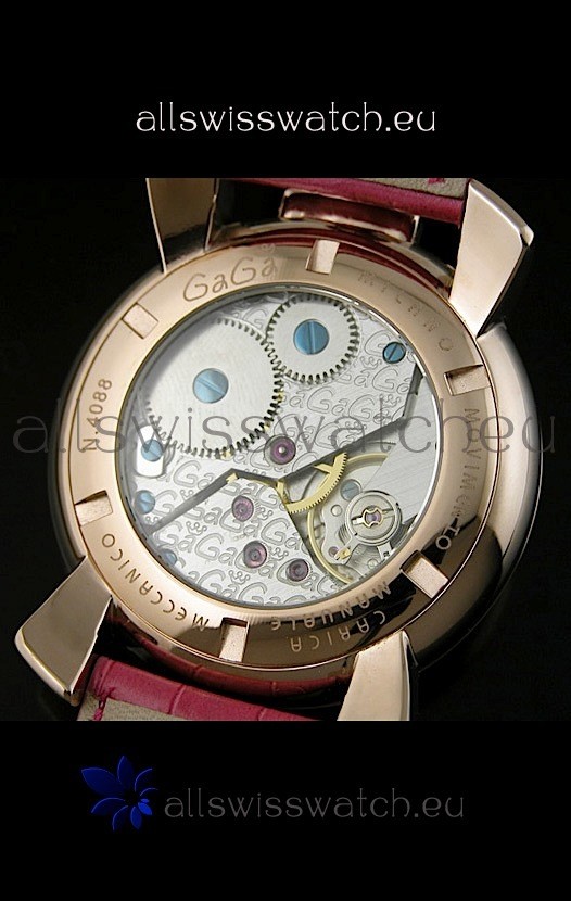 GaGa Milano Japanese Handwind Movement in Pink Strap - Pink Gold Casing