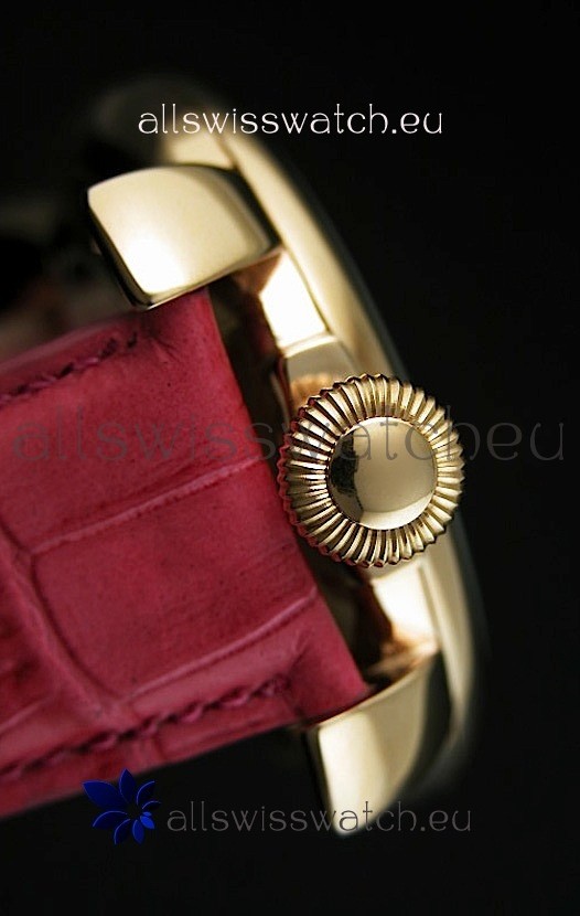 18K Pink Gold Plating on 440 Polished Steel Casing with Crown located at 12 Clcok