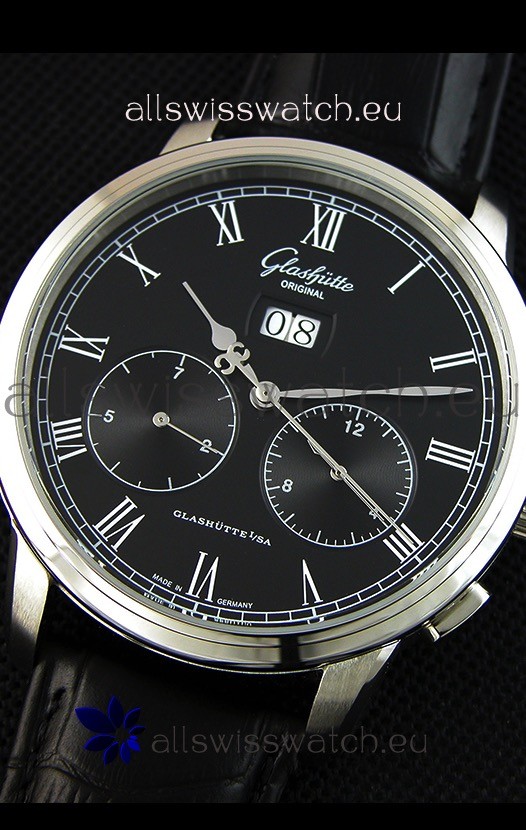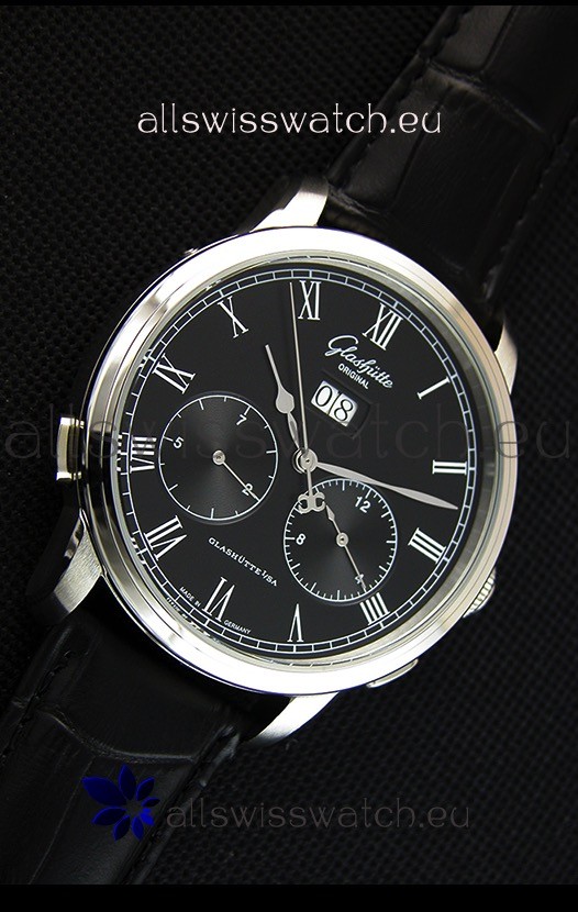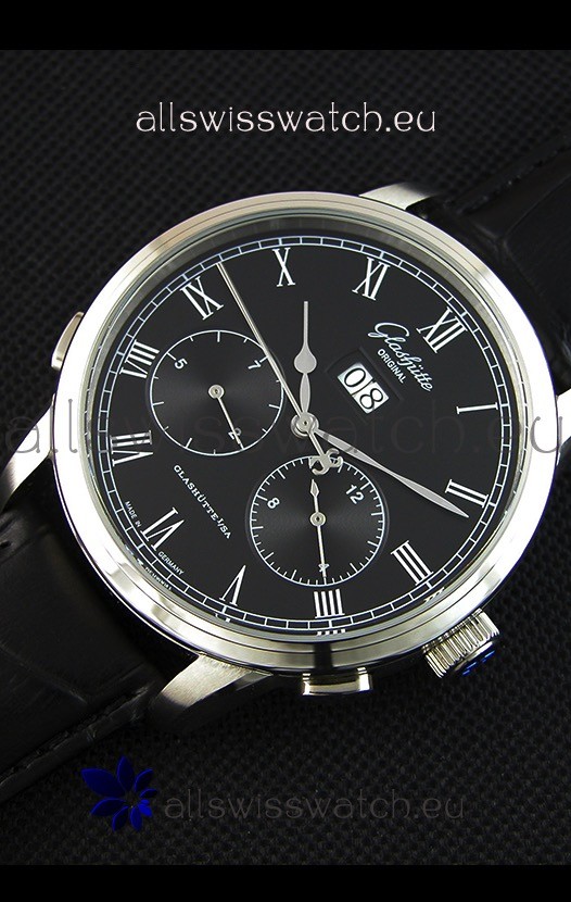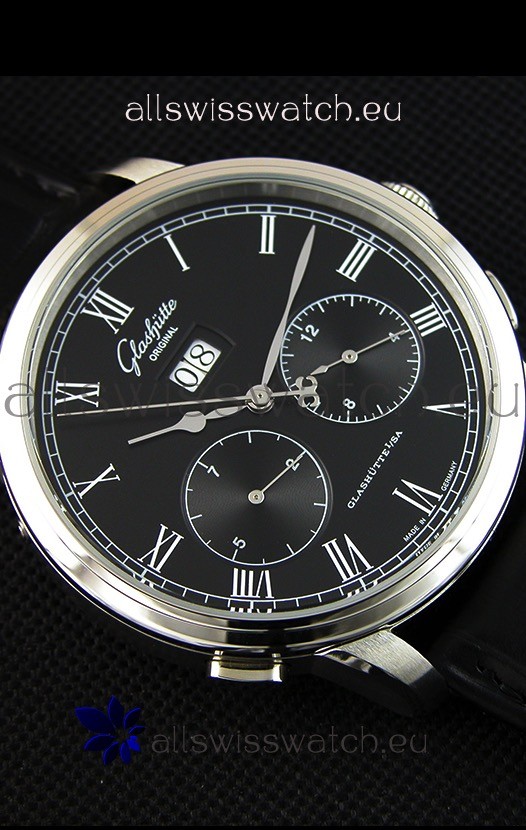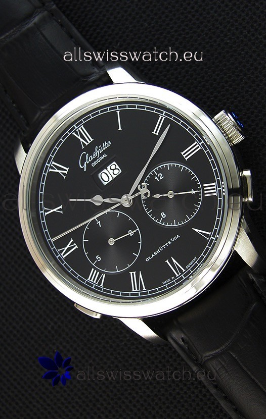 Top Grade Glashuette Dual Sub Dial Japanese Replica Watch in Black Dialwith Free Shipping and 1 year warranty