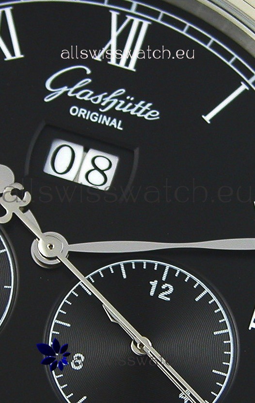 Glashuette Dual Sub Dial Japanese Replica Watch in Black Dial