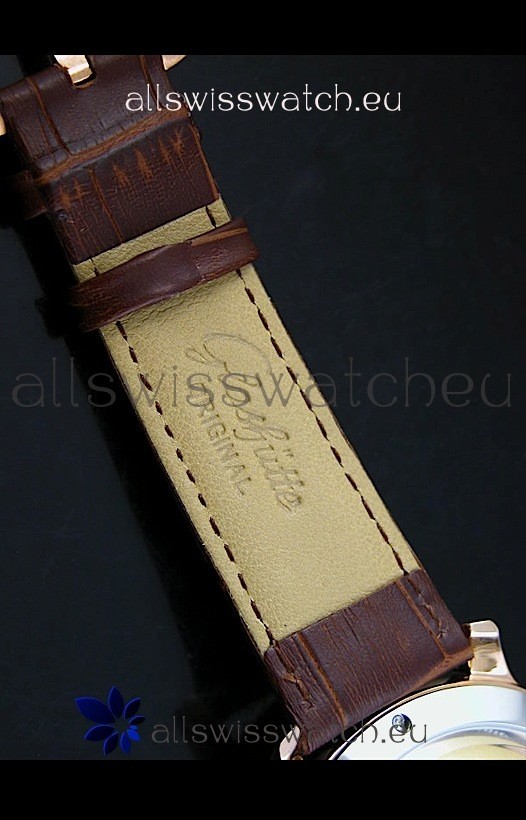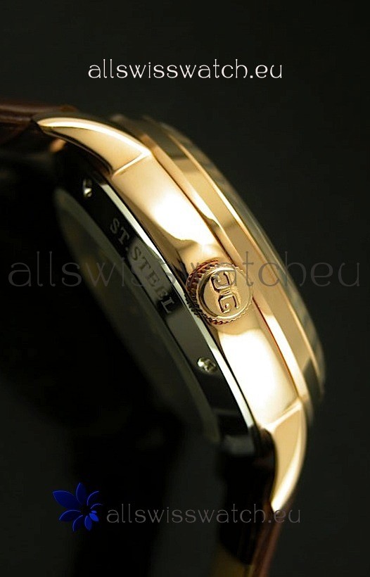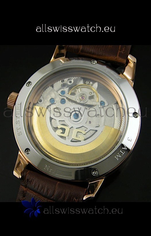 18K Pink Gold Plating on 440 Stainless Steel Case with Glashuette Markings and Engravings