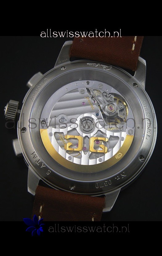 316L Stainless Steel Brushed Casing complete with Glashuette Markings and Engravings