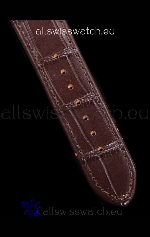 Genuine Leather Strap complete with Glashuette Markings and Engravings with Steel Tang Buckle.