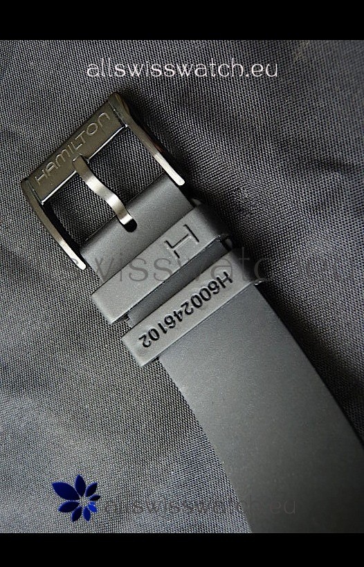 Genuine Black Rubber Strap with PVD Coated Tang Steel Buckle