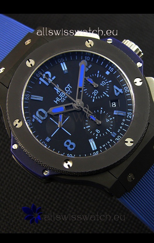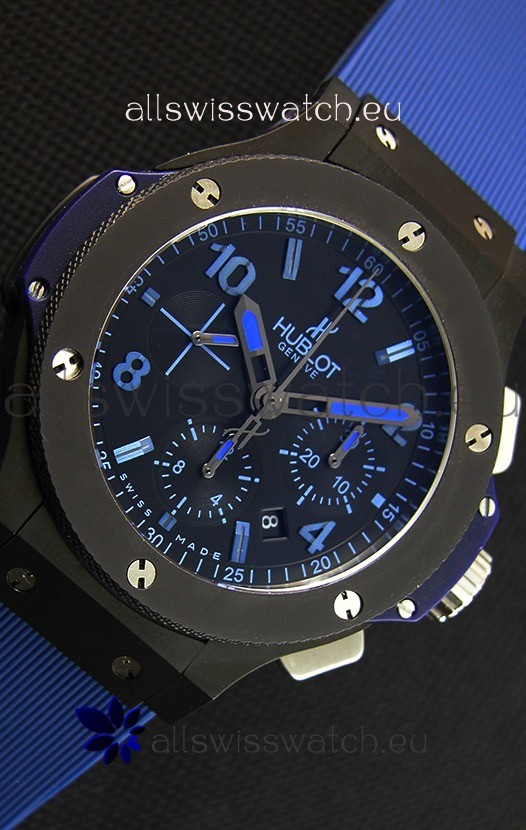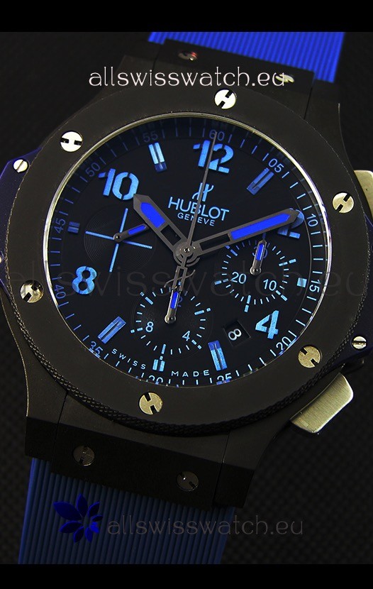 Hublot Big Bang All Black PVD Blue Swiss Replica Watch 1:1 Mirror Replica