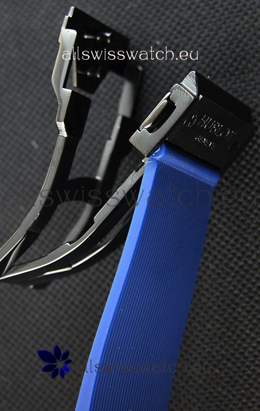 Rubber Strap with PVD Coated Steel Clasp complete with Hublot Markings and Engravings.