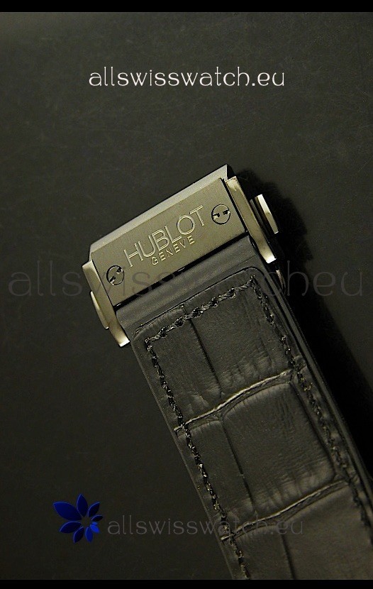 Hybrid Leather and Rubber Strap with Hublot Markings and Engravings