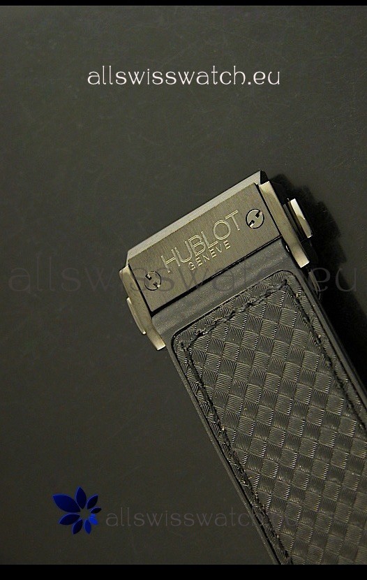 Hybrid Leather and Rubber Strap with Hublot Markings and Engravings