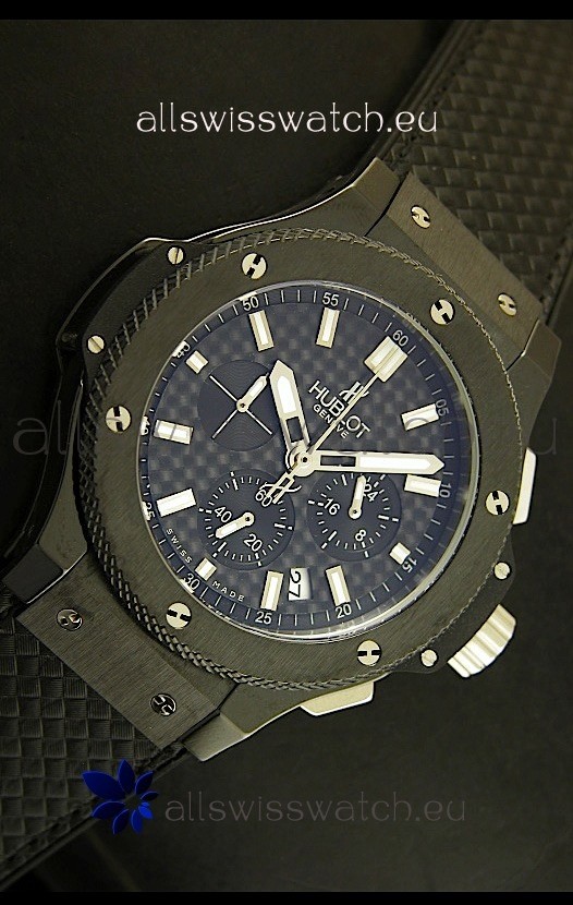 Black Carbon Dial with 3 Functional Sub Dials and Date Window at 4 O'Clock