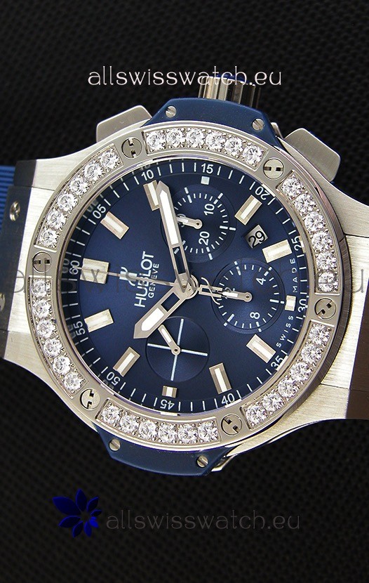 316L Stainless Steel Case complete with Hublot Markings and Engraving. Diamonds Bezel.