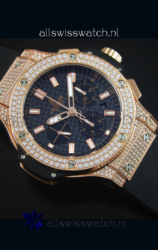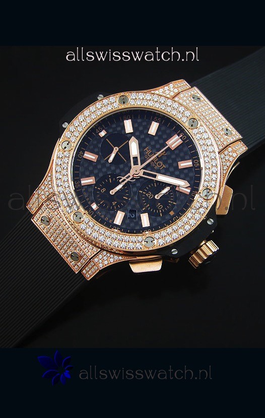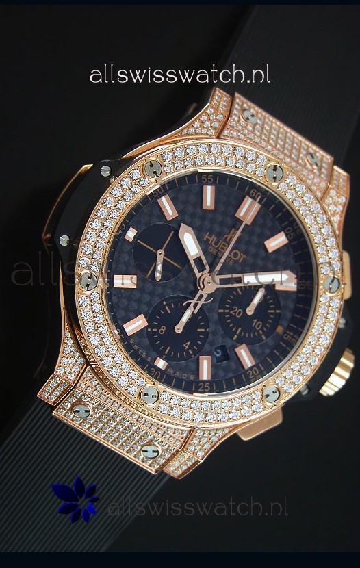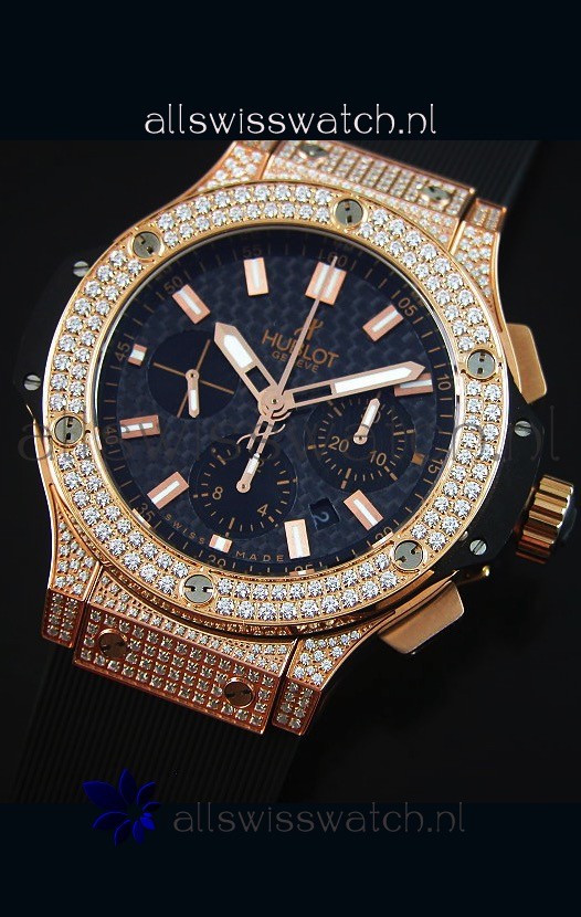 Hublot Big Bang Carbon Dial Diamonds Studded Rose Gold Swiss Watch