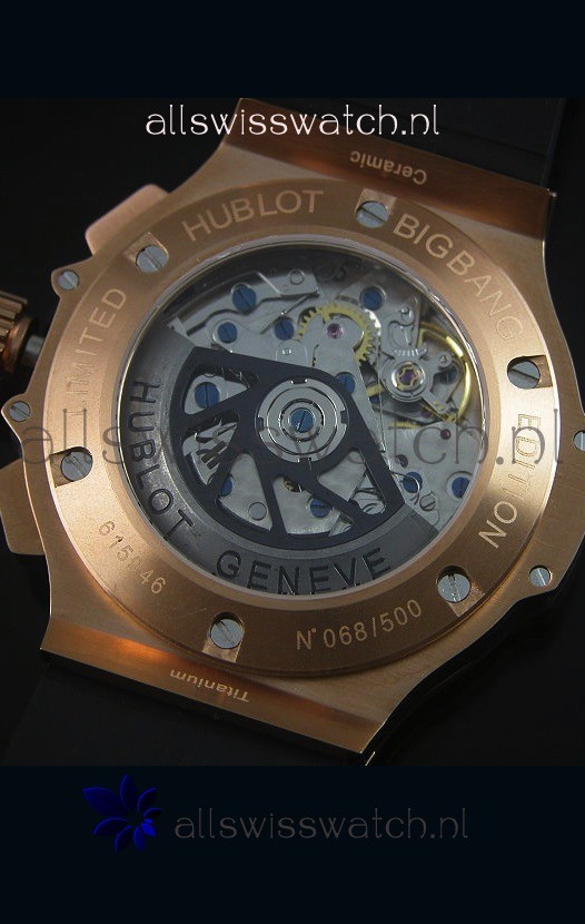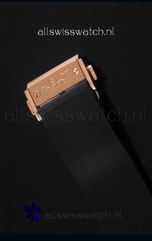 Genuine Rubber Strap with Rose Gold Plated Deployment Clasp complete with Hublot Markings
