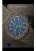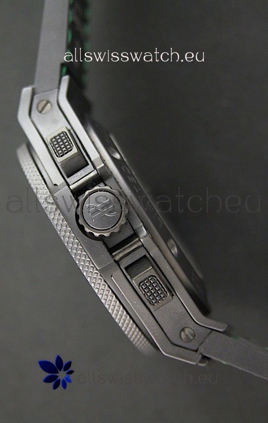 Function: Hour, Minute, Second, Date Display at 4:3, Green Raise Steel Batton Hour Markers, Green Minute, Three Functional Subdials and Fully Functional Chronograph