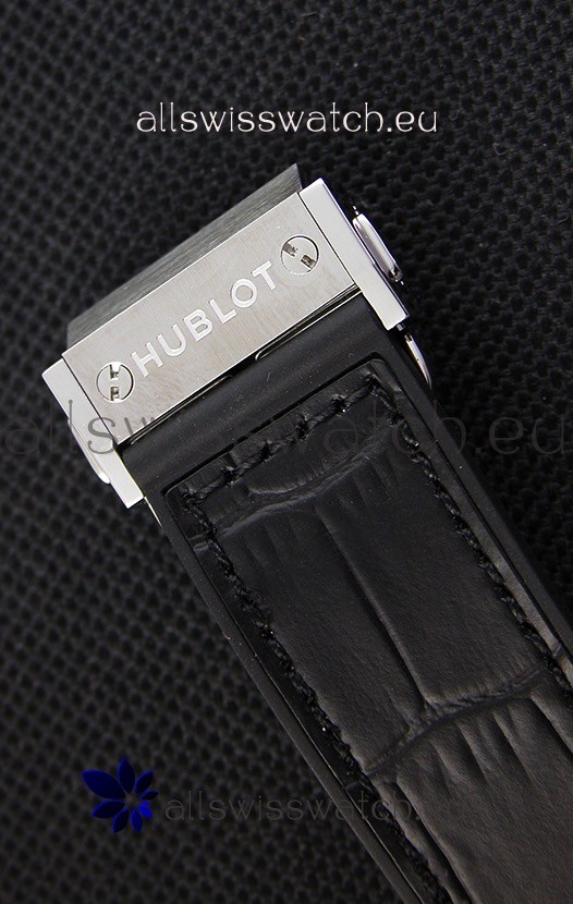 Leather Gummy Strap with Steel Folding Clasp complete with Hublot Markings and Engravings.