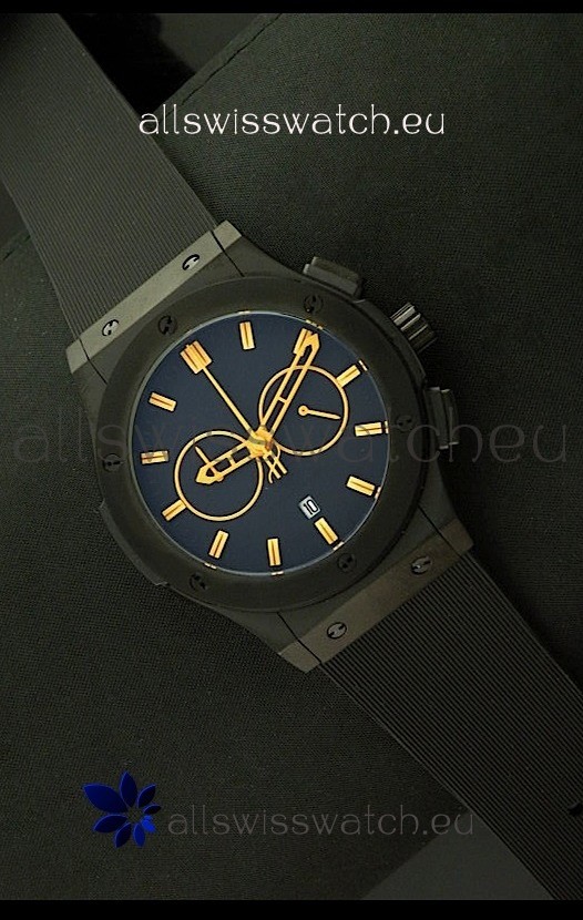 Hublot Big Bang Classic Fusion Chrono Japanese Watch with Yellow Markers Ceramic Case