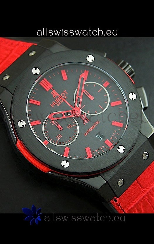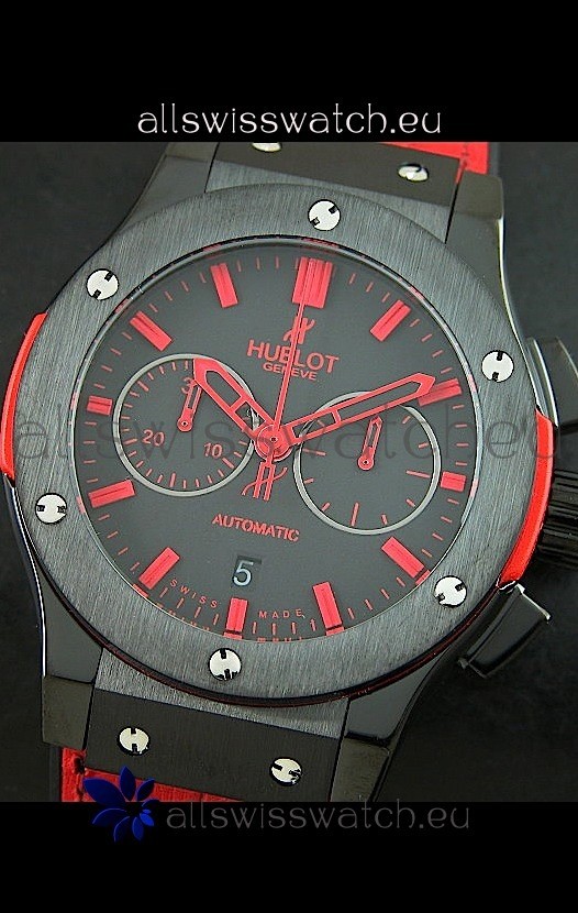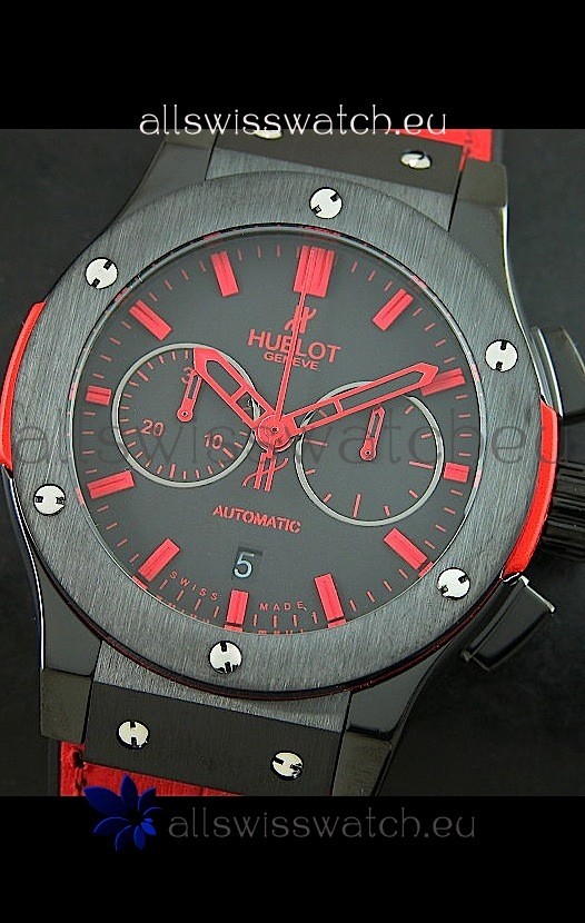 Hublot Big Bang Classic Fusion Swiss Replica PVD Watch in Red Strap