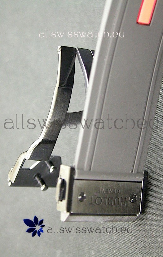 Strap: Black Rubber Strap with Hublot Markings and Hublot Styled Clasp