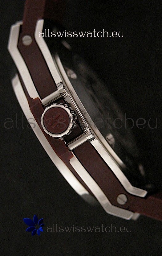 Strap: Brown Ribbon Pattern Rubber Strap with Deployant buckle